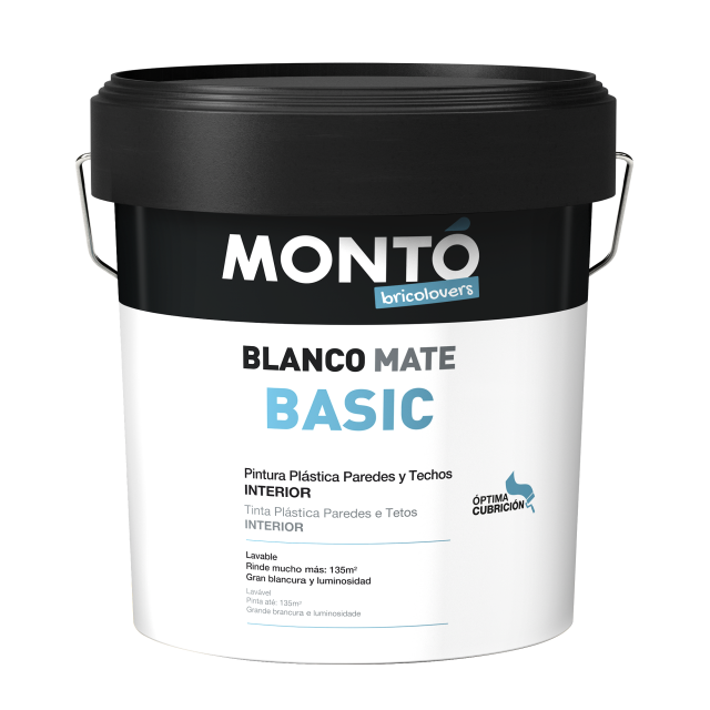 Pintura para trabajos económicos de acabado mate. Basic es una pintura para techos o paredes de todo tipo que no amarillea, de elevada transpiración y buena cubrición en seco. Esta pintura blanca de interior tiene buena resistencia, aporta gran blancura y luminosidad, además de dar muy buen rendimiento.